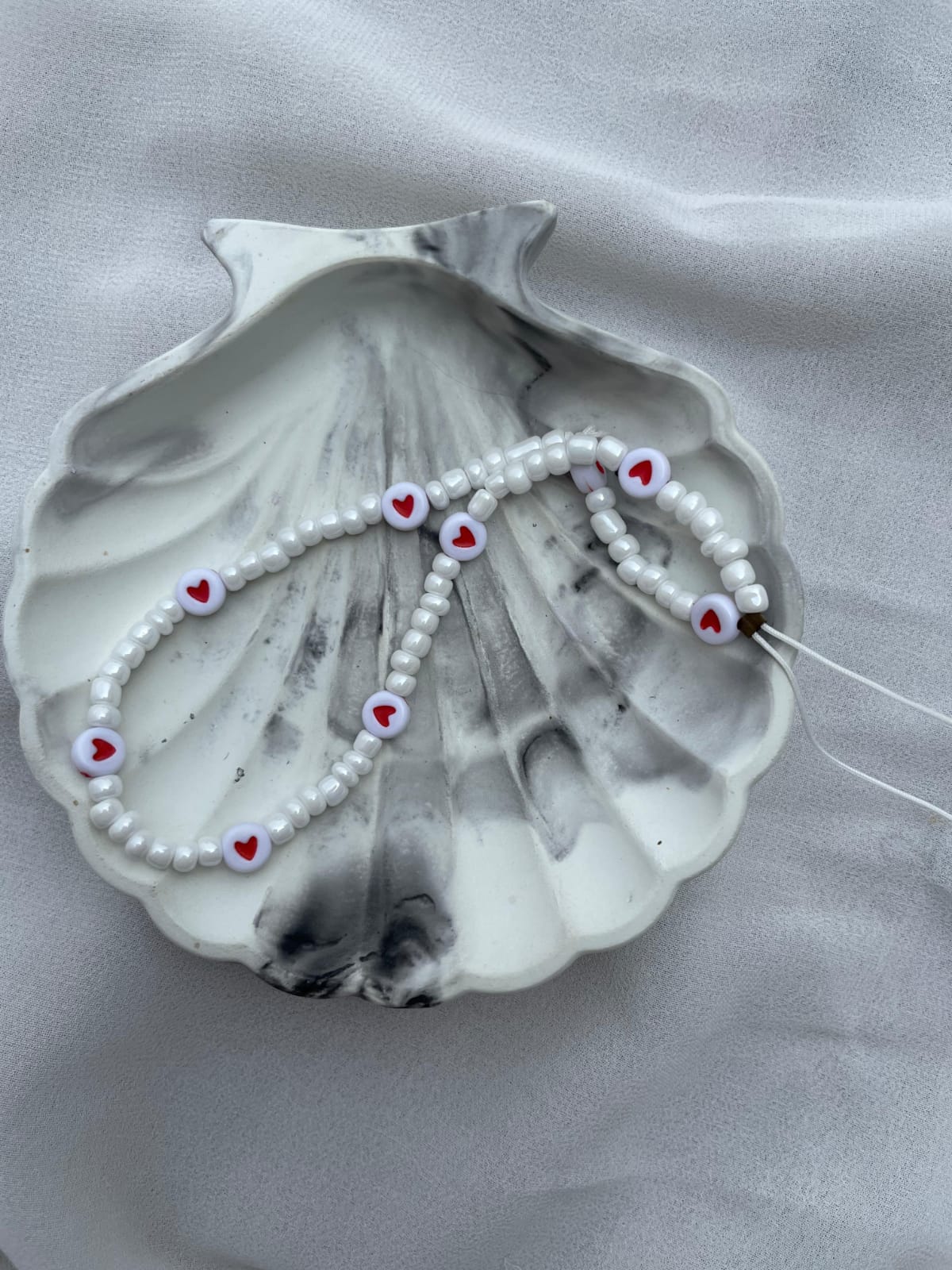 Crafted with delicate white beads and charming heart accents, this bracelet is a symbol of love and joy.
