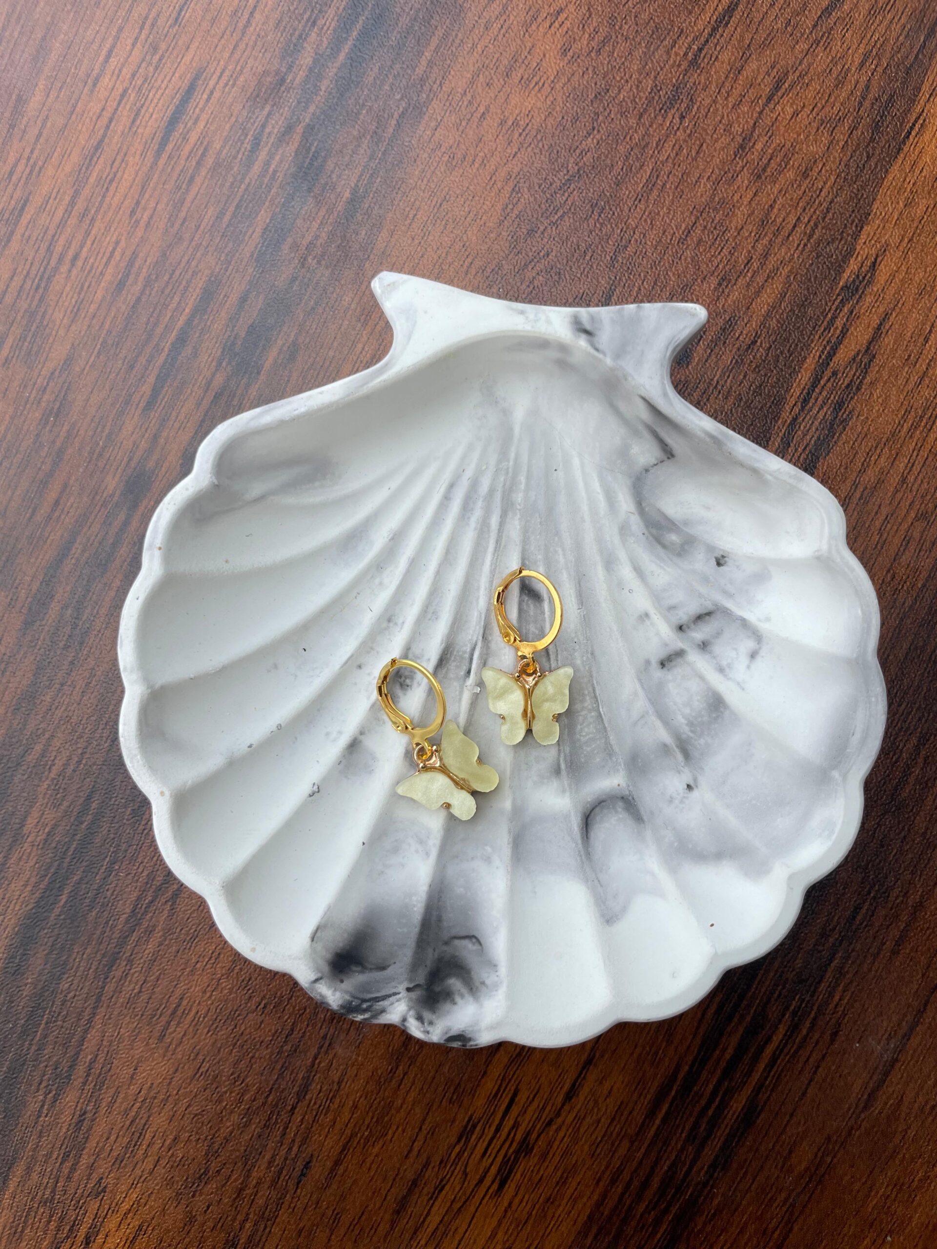 Add a touch of magic with Dreamy Flutter earrings, featuring pearly white butterfly charms.