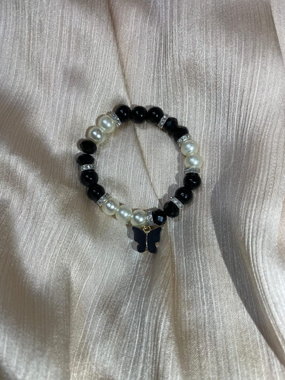 The perfect mix of pearls, sparkle, and a charming black butterfly.