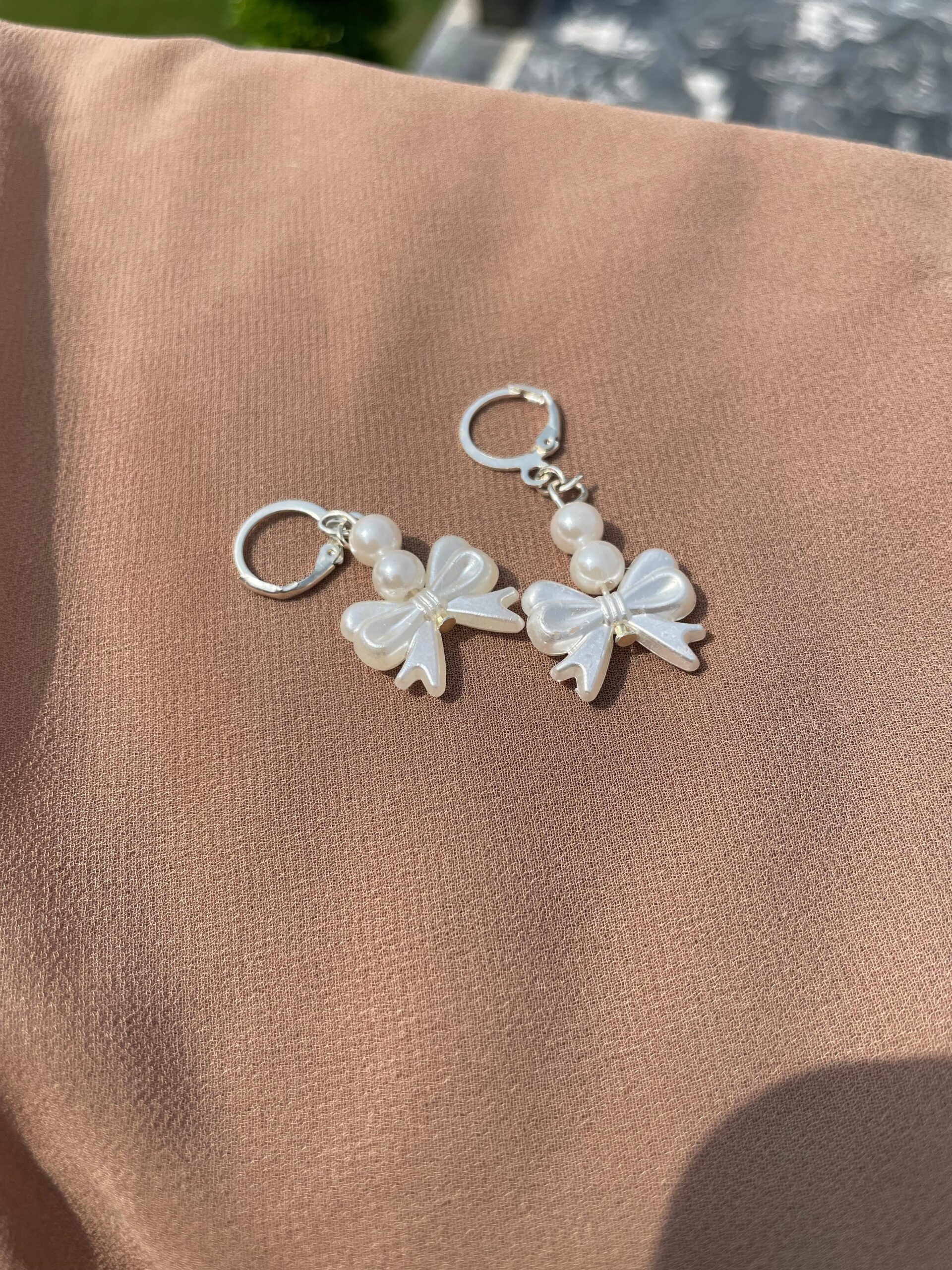 Elegant pearl and bow earrings that blend charm with timeless style.